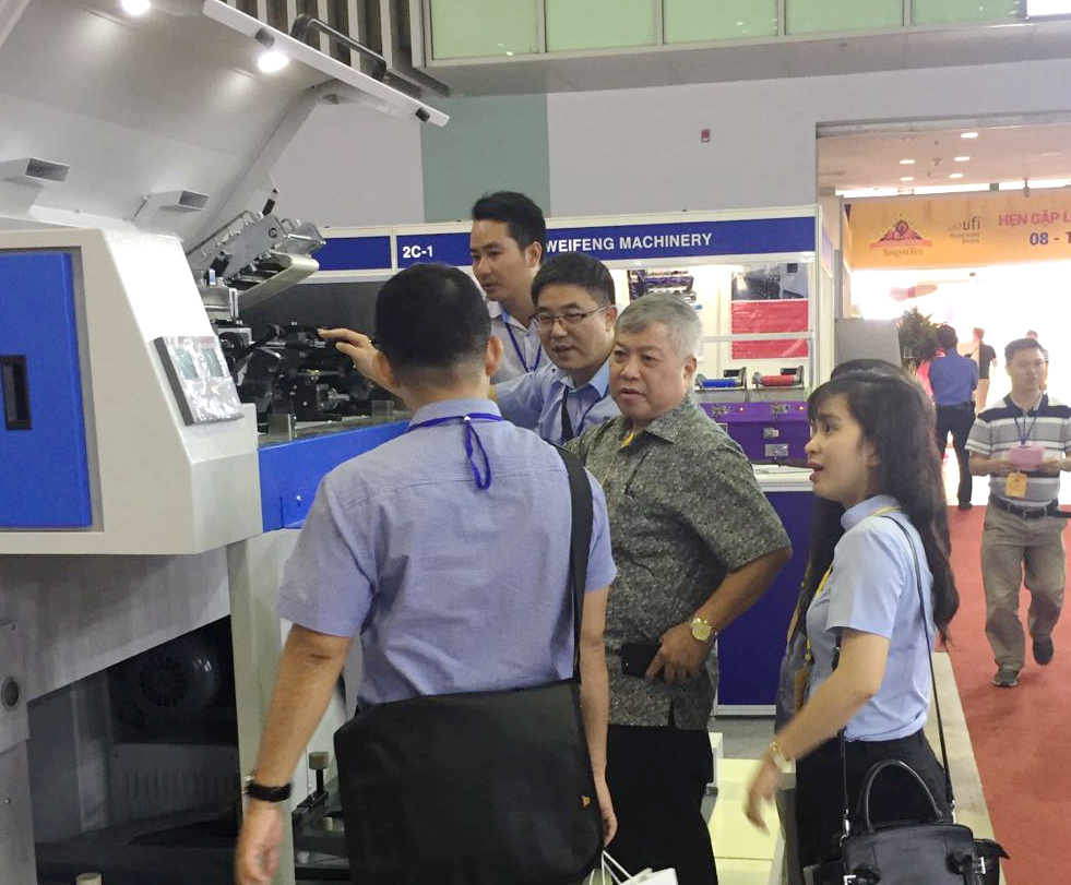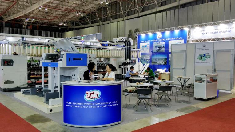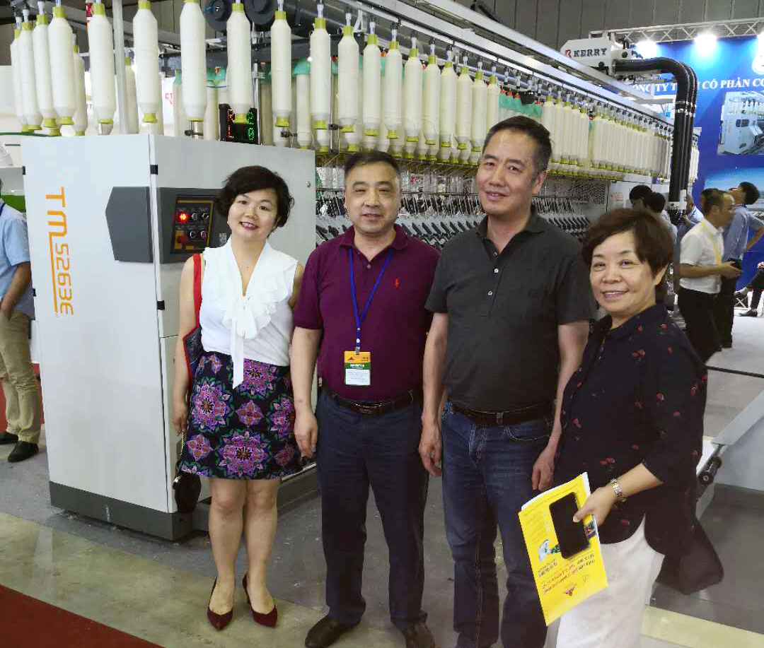 在展會(huì)上,位于A2-2D-1湖北天門紡織機(jī)械股份有限公司展位人頭攢動(dòng)、客戶云集,成為整個(gè)展會(huì)的一大亮點(diǎn),VINATEX NAM DINH、VICOTEX、 成功紡織、臺(tái)灣興業(yè)、臺(tái)南紡織、東光公司等當(dāng)?shù)仄髽I(yè)負(fù)責(zé)人親赴現(xiàn)場參觀,華孚時(shí)尚董事長孫偉挺等嘉賓在天門紡機(jī)展位認(rèn)真觀看設(shè)備演示,詳細(xì)了解了產(chǎn)品的新性能和新工藝,對天門紡機(jī)并條機(jī)與細(xì)紗機(jī)兩款展機(jī)給與高度評價(jià)。