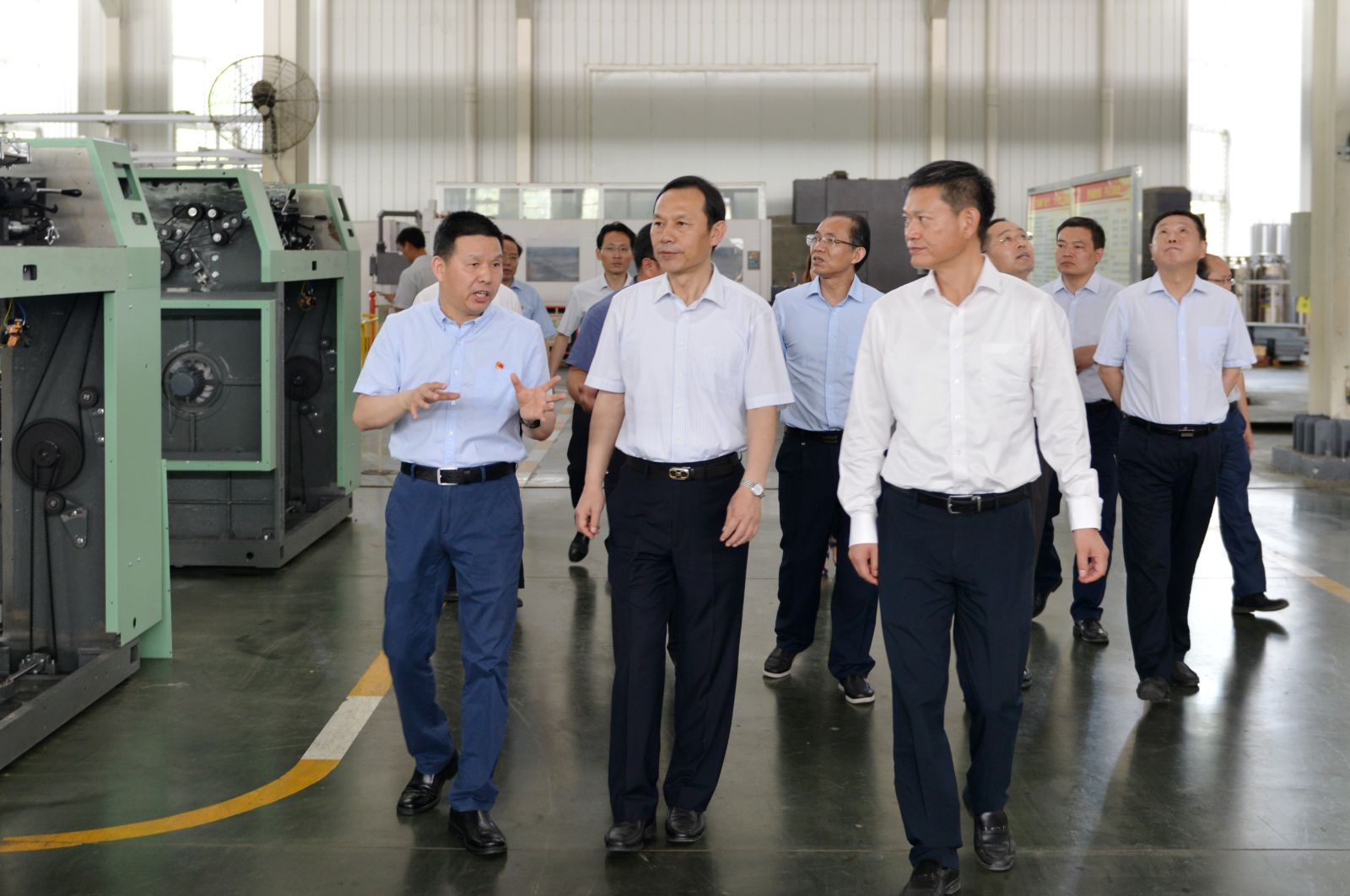 2019年7月16日上午,湖北省委副書記、武漢市委書記馬國強(qiáng)在天門市委書記莊光明的陪同下,考察了天門紡機(jī)。公司董事長沈方勇引導(dǎo)馬書記一行參觀了生產(chǎn)現(xiàn)場和綜合展示廳,并向馬書記介紹了企業(yè)基本情況。沈方勇說:天門紡機(jī)是一家老字號(hào)機(jī)械制造企業(yè),通過改革、改制、改造,成為國內(nèi)集研發(fā)、生產(chǎn)、銷售于一體的紡織裝備重要供應(yīng)商和中國紡織機(jī)械協(xié)會(huì)副會(huì)長單位,主導(dǎo)產(chǎn)品棉紡并條機(jī)在國內(nèi)無論生產(chǎn)規(guī)模還是產(chǎn)銷量均處于領(lǐng)先地位。雖然今年以來中美貿(mào)易摩擦給行業(yè)帶來了許多不利影響,但目前公司生產(chǎn)經(jīng)營運(yùn)行正常,新產(chǎn)品研發(fā)后勁十足,下一個(gè)趕超的目標(biāo)是代表世界先進(jìn)水平的瑞士立達(dá)和德國特呂茨勒的同類產(chǎn)品,力爭打造國際品牌,實(shí)現(xiàn)可持續(xù)發(fā)展。馬書記聽到匯報(bào)后表示贊賞,希望天門紡機(jī)今后在產(chǎn)品技術(shù)上不斷創(chuàng)新,在品牌培育上繼續(xù)發(fā)力,在生產(chǎn)經(jīng)營上進(jìn)一步做大做強(qiáng),為民族工業(yè)爭氣爭光。