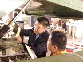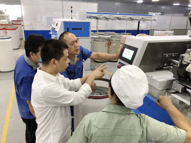 天門紡機專家團隊成員樊早斌、楊義兵、于少波、楊文峰在工作現(xiàn)場