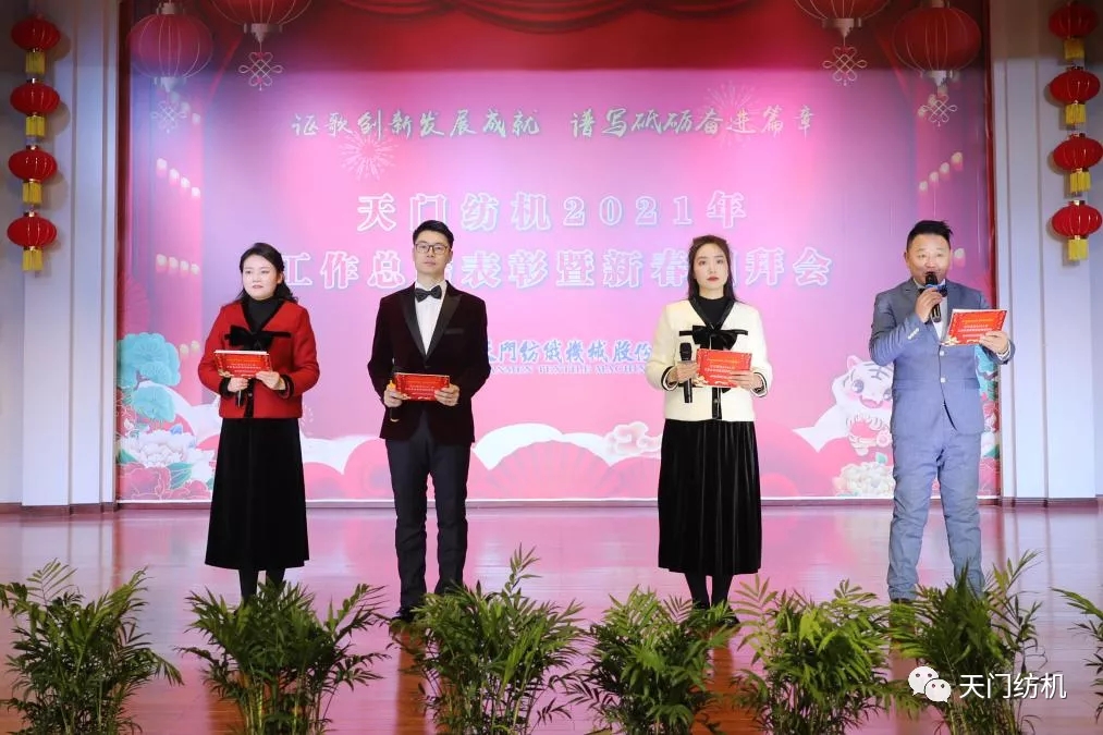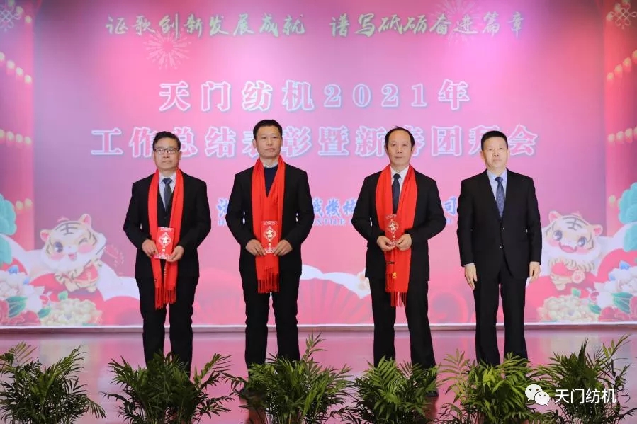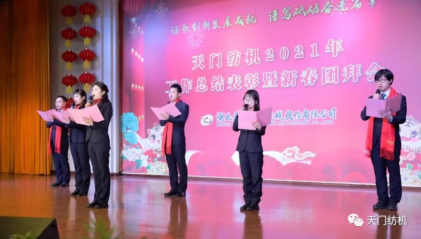 金牛奮蹄去,瑞虎踏雪來(lái)。1月29日,天門紡機(jī)的大禮堂燈光璀璨、歡聲笑語(yǔ),2021年工作總結(jié)表彰暨新春團(tuán)拜會(huì)隆重舉行,全司員工歡聚一堂,共賀虎年新春。