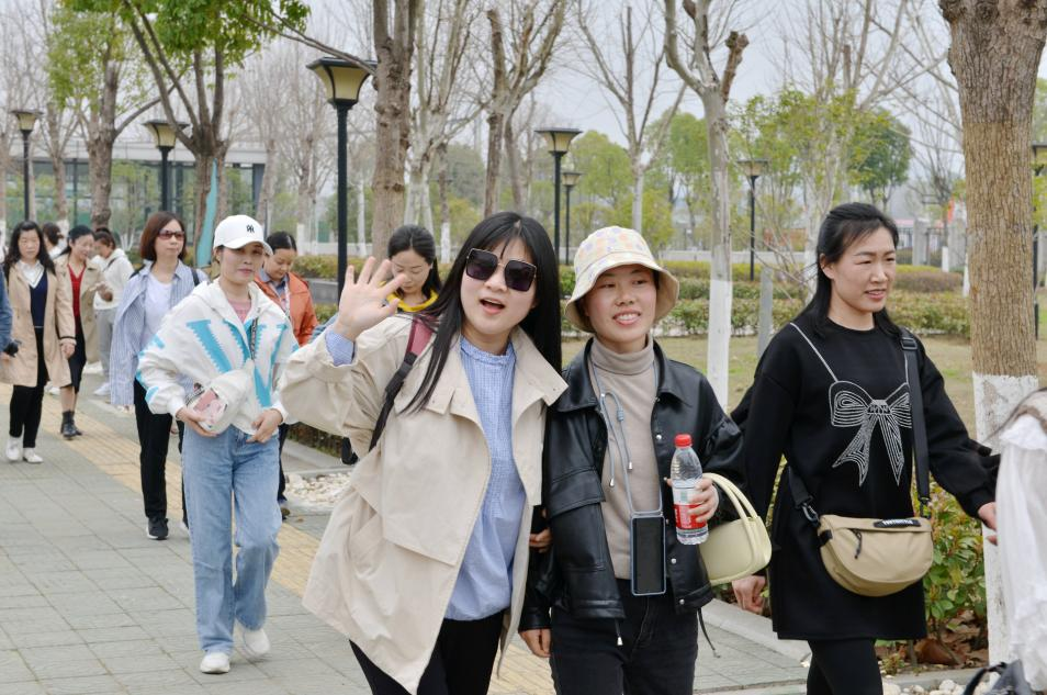 伴隨徐徐春風(fēng),“娘子軍”踏上了旅程。大巴上,大家一起玩游戲,唱車載KTV,一路洋溢著歡聲笑語,轉(zhuǎn)眼便抵達(dá)第一站——后官湖國家濕地公園。
