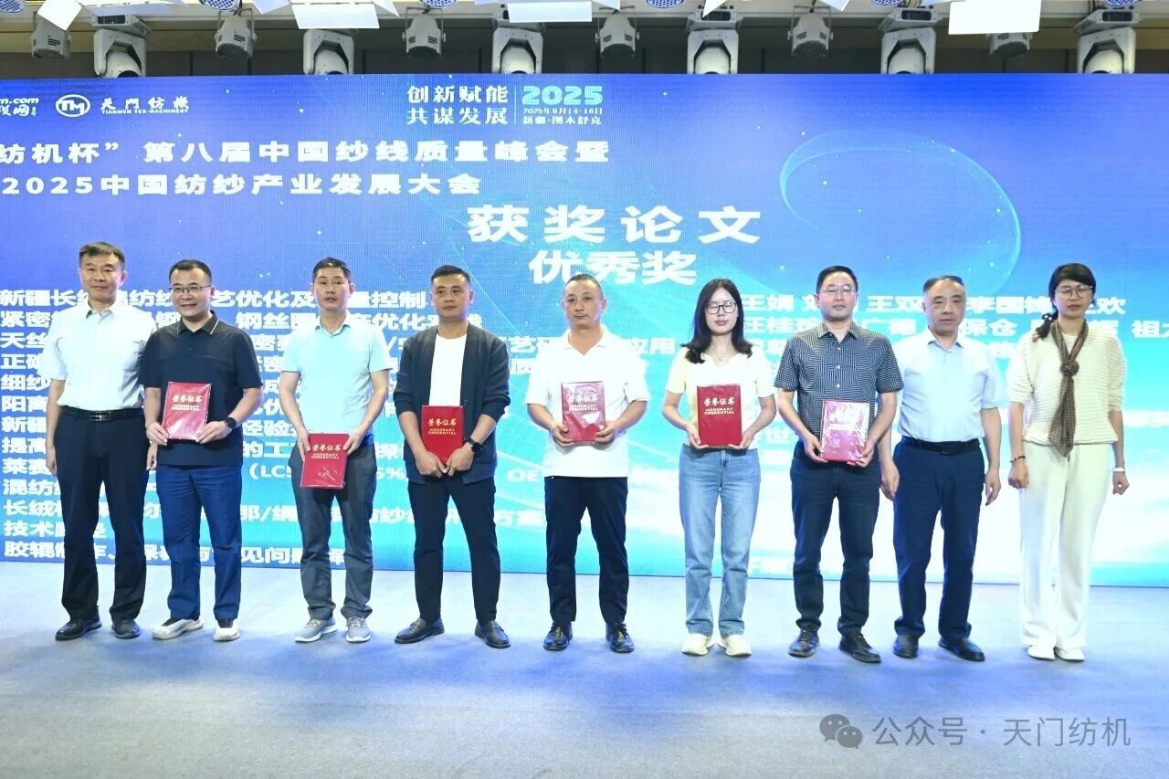 開幕式上,隆重舉行了“天門紡機杯”第八屆中國紗線質(zhì)量峰會獲獎?wù)撐念C獎活動,新疆維吾爾自治區(qū)紡織工程學(xué)會理事長、新疆大學(xué)紡織與服裝學(xué)院院長夏鑫,天門紡機總經(jīng)理焦倫進,中國紗線網(wǎng)總裁鞠彥軍為獲獎作者頒發(fā)了證書和獎金。