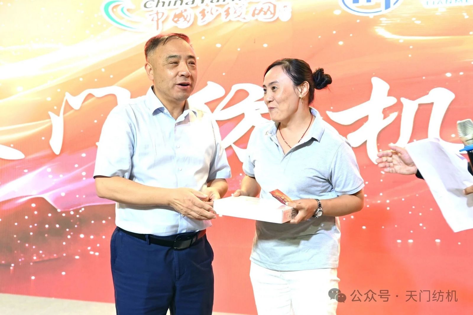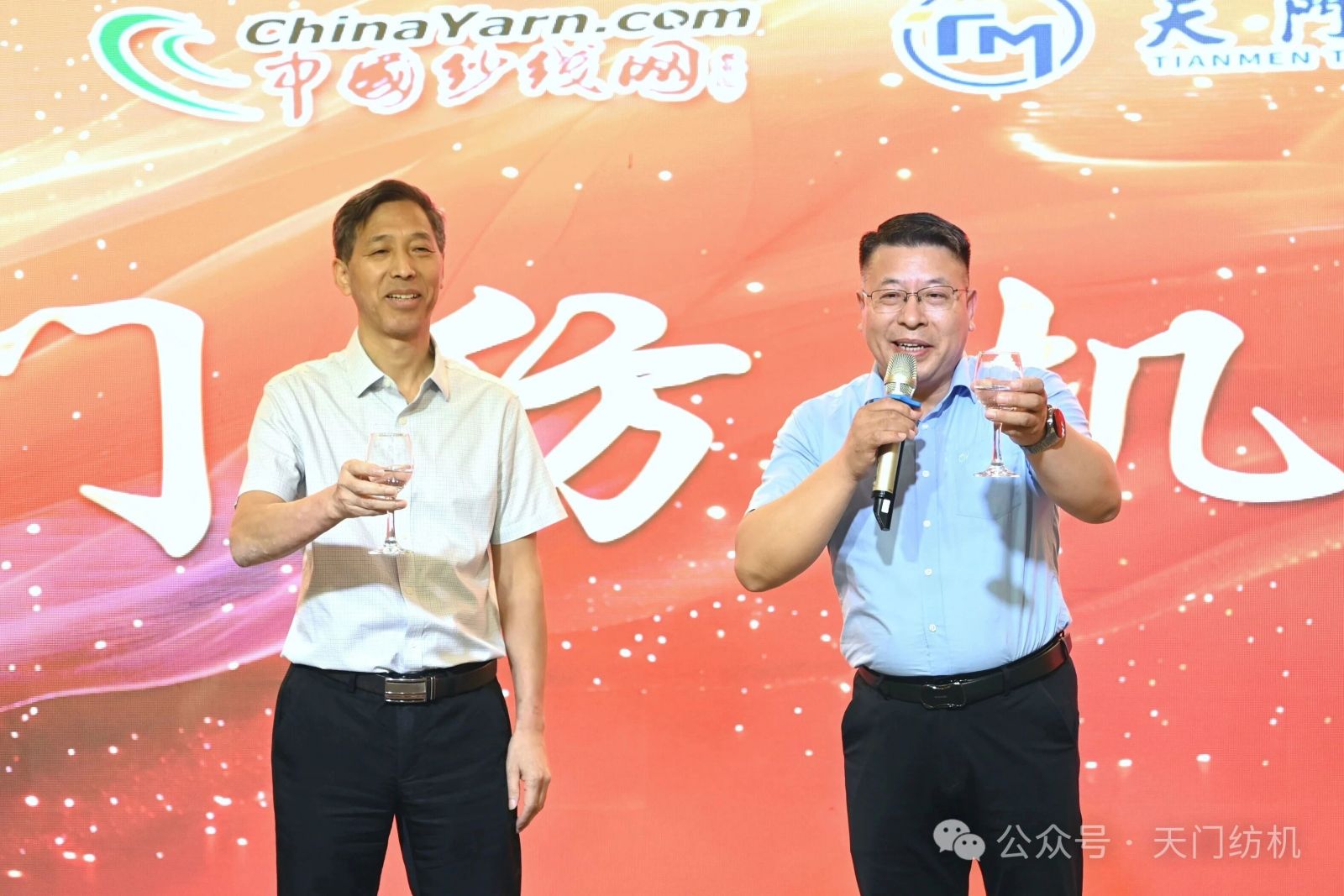中國紗線網(wǎng)常務(wù)副總裁孫其海(左)、天門紡機市場總監(jiān)王繼文(右)為晚宴致辭