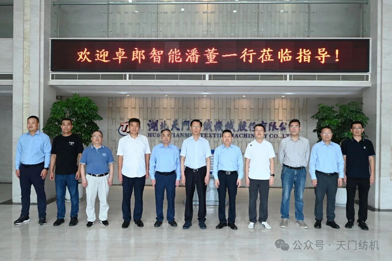 2025年9月27日,卓郎智能技術(shù)股份有限公司董事長(zhǎng)潘雪平一行7人蒞臨天門(mén)紡機(jī)參觀交流,公司董事長(zhǎng)沈方勇予以熱情接待。雙方圍繞紡織行業(yè)發(fā)展形勢(shì)及合作項(xiàng)目等議題進(jìn)行了深入交流。