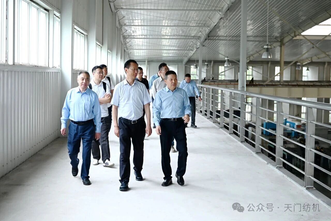 潘雪平董事長(zhǎng)一行在沈方勇董事長(zhǎng)的陪同下,深入車(chē)間一線,實(shí)地感受了天門(mén)紡機(jī)繁忙的生產(chǎn)現(xiàn)場(chǎng)以及火熱的“智慧工廠”項(xiàng)目施工現(xiàn)場(chǎng),了解到了公司在智能化改造和數(shù)字化轉(zhuǎn)型方面的最新成果。沈董事長(zhǎng)講解了公司產(chǎn)品的特點(diǎn)、特色,并就TM系列并條機(jī)的市場(chǎng)行情進(jìn)行了重點(diǎn)分析和介紹。